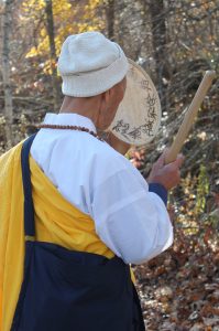 Many Buddhist traditions have a practice of pradakshina, where the practitioner walks around a devotional object while meditating, praying or reciting mantras. The practice demonstrates reverence for the object or place; but more than that, it is an act sanctifying, or re-investing a place with holiness. Chant is the root of enchantment. To chant to the land, to these places that have been so brutally disenchanted is, perhaps, to re-consecrate the landscape that has been stripped of its vitality through the brutal acts of colonialist history. The monks of Nipponzan Miyohoji are re-enchanting the lands of Southern New England and, in that sense, also re-animating the Earth.