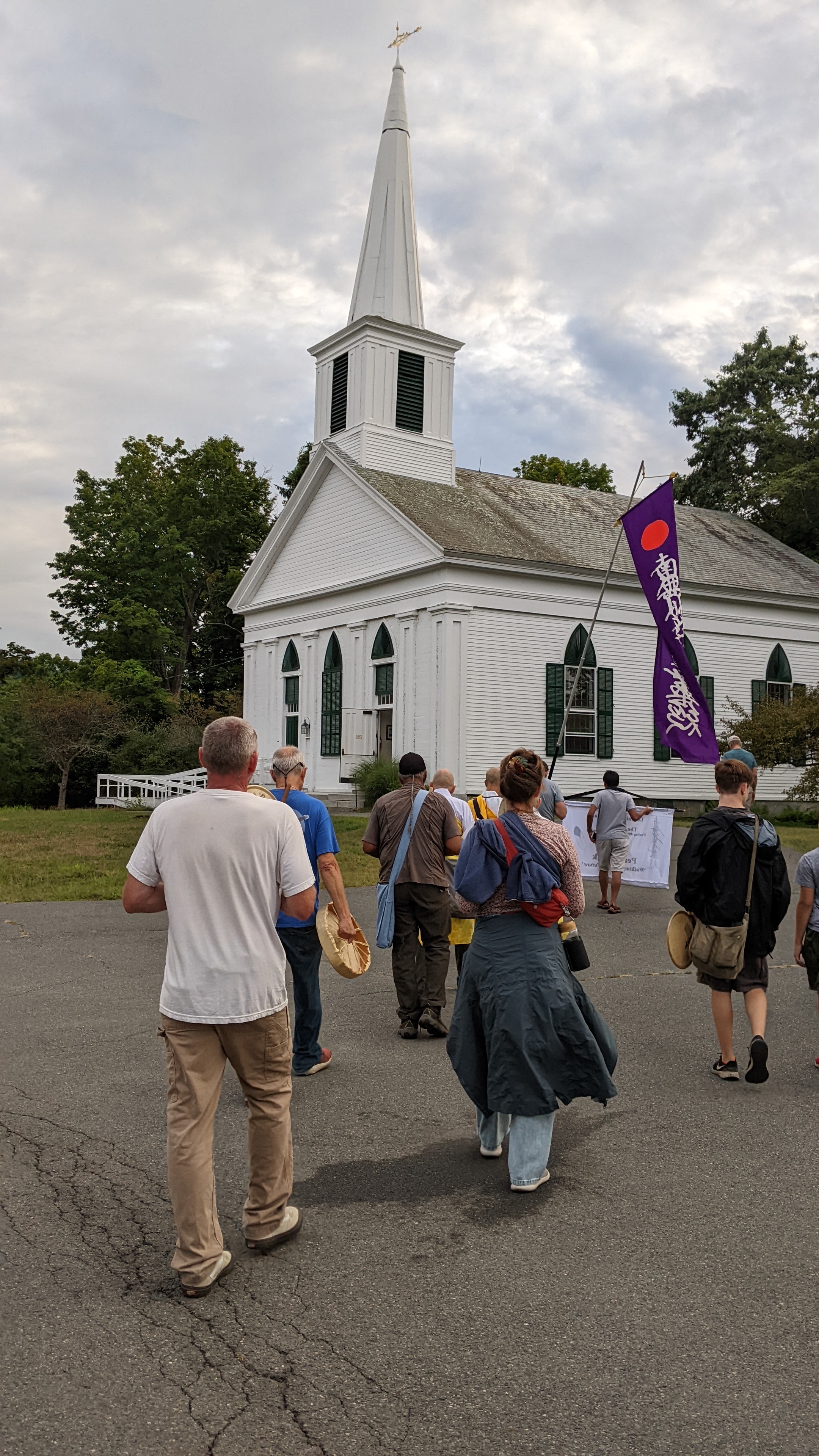 To take a cue from the national Grassroots Reparations Campaign, on the pathway of truth and reconciliation, you have to voice the truth before you can get to reparations. Only then – and only after some kind of real reparations have been made, materially, culturally, spiritually – can you begin to have reconciliation. The first step doesn’t get you to the end of the journey, but until you take that step, there is no movement, no journey and no hope of metabolizing the traumas of history. By walking the ghostly roads of colonial New England and inviting others to walk with them, the monks of the New England Peace Pagoda are, step by small step, re-enchanting the land and, step by small step, opening a path for truth against the silence of history, so that one day there may perhaps be reconciliation, healing, and peace.